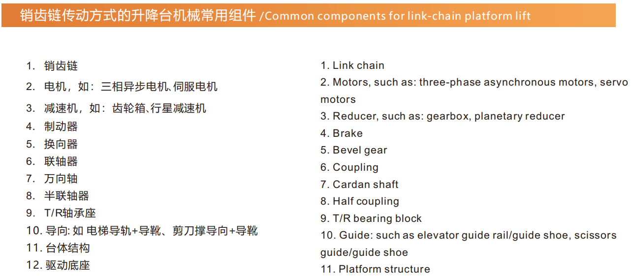 刚性链升降台机械常用组件