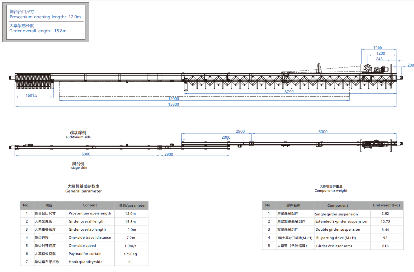 大幕机选型图 12.0m/15.8m